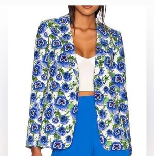 Alice & Olivia Blue Macey Floral Blazer Fitted Size 2