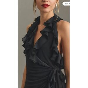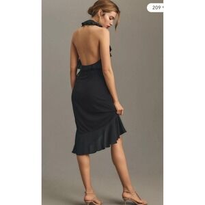 Anthropologie Halter Ruffle Asymmetrical Midi Dress Black Size Small