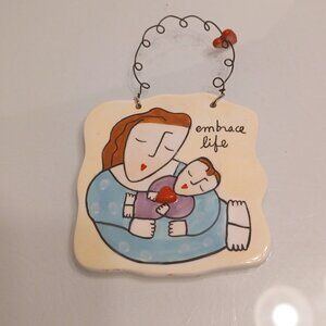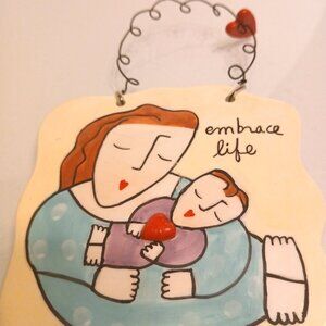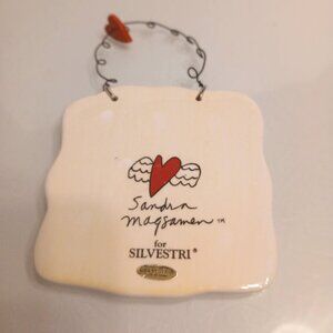 Very Nice Sandra Magsamen For Silvestri "Embrace Life" Ceramic Hanging Plaque Sign. 4 Inches High And 4 Inches Wide Very Good Condition