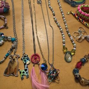 Includes 6 necklaces, 6 flower rings and 11 bracelets