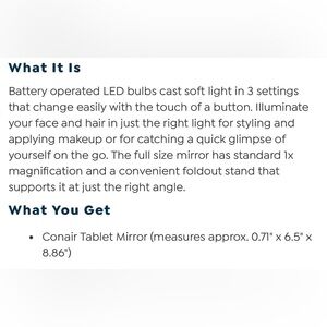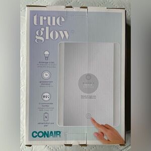 Enhance your beauty routine with the True Glow Touch Screen Mirror. Featuring LED lighting and touch control, this white mirror offers three light settings for perfect illumination. Ideal for precise makeup application. Perfect for travelling and camping. Requires 4 AAA Batteries ( not included). Brand new in box