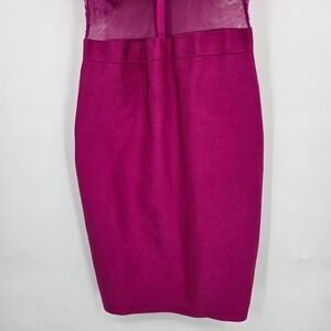 Bebe Bodycon Dress Lace Ruffle Mesh Party Cocktail Dress Magenta Size M