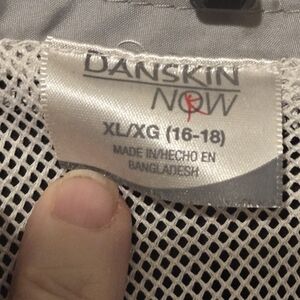 Stylish Danskin Now dance studio, lightweight jacket. Black with white accents and reflective details for safety at night while leaving the studio or evening runs. This is perfect for casual wear and layering over workout gear. This cool jacket has a longer curved back for extra wind protection. This is like new, gently tested with no defects. The approximate unstretched measurements;