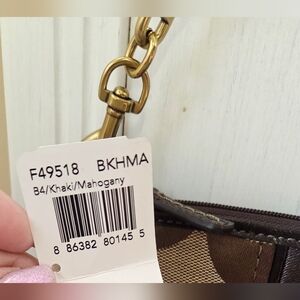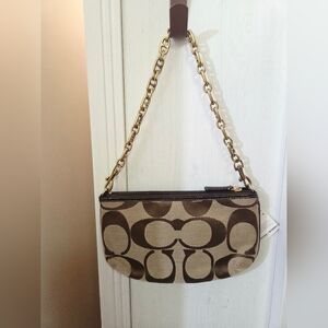 Brand New Vintage Small Coach Signature Canvas Bag with tag attached. Original strap was damaged and removed, I added on a really nice gold purse chain.