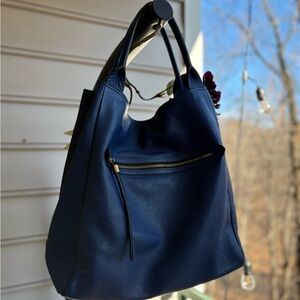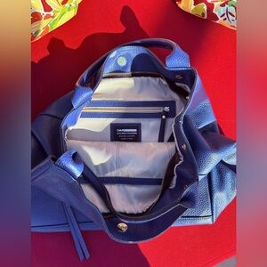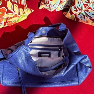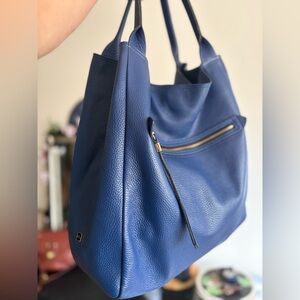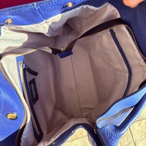 Beautiful Gianni Chiarini large carryall tote in a rich cobalt blue pebbled leather. This bag looks brand new and has been very gently handled, if at all. Leather is smooth, supple, and vibrant with no visible signs of wear.