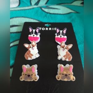 Adorable dog-themed hair clips. Features playful designs with pink, brown, and black accents.