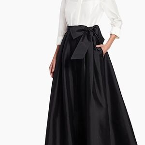 Terri Jon Elegant White Black Maxi Evening Dress