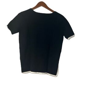 - Zara Knit Womens Black Short Sleeve Sweater Sz M cropped casual work white trim