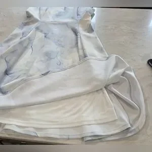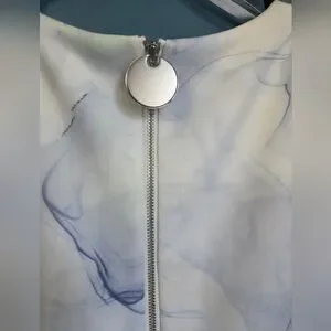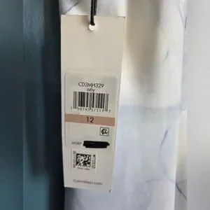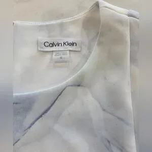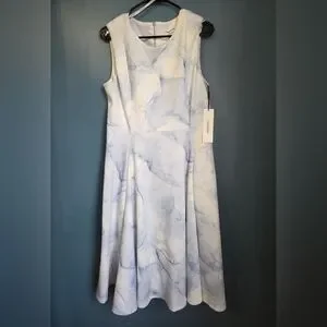 New with tags. retail $134. By Calvin Klein, fully lined, stunning marble print with blue, white, and a light mint green, light Lilac hues also. Size 12 and stretches. Measurements: About 40 inches long, 17 inches across approx. waist, 18 pit to pit.