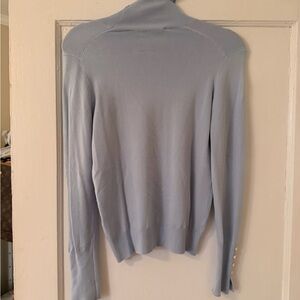 Chic ZARA ribbed turtleneck sweater in a soft light blue shade. Features a slim, flattering fit with long sleeves and decorative button detail at the cuffs. Perfect for layering or wearing on its own for a polished, minimalist look.