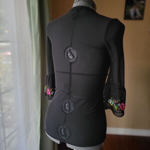 Express Sheer Black Blouse with Colorful Floral Embroidery Size XS