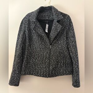 Ann Taylor NWT Black White Nubby Tweed Moto Jacket Size 12