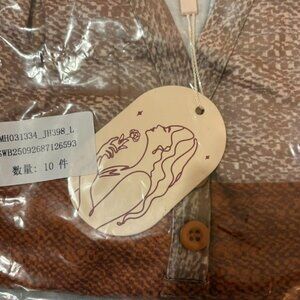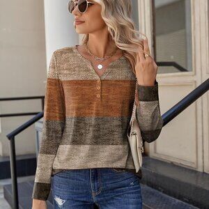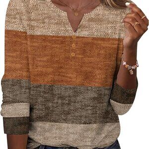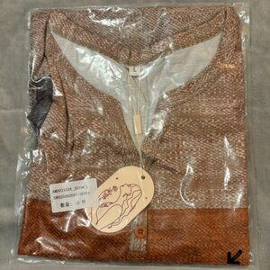 Zeagoo Geometric Print Henley Top Neutral Brown Beige Long Sleeve Size L NWT
