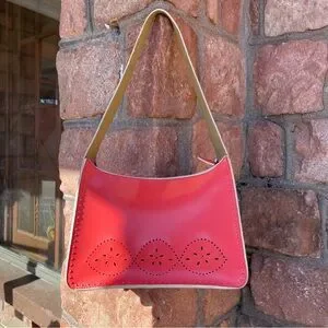 Adorable bag! Medium size shoulder bag. Coral pink leather. Brand is Mondani.