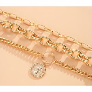 Gold Tone 3 Separate Strand Large Statement Necklace