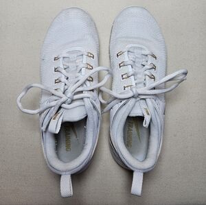 Nike Air Zoom Hyperace 2 athletic shoes in a white and metallic gold colorway.