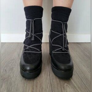 Elevate your style with these chic black wedge boots. Perfect for any occasion, they offer both comfort and elegance.