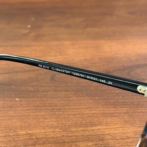 Stylish Ray-Ban sunglasses with a classic black and gold frame. Perfect for a modern look.