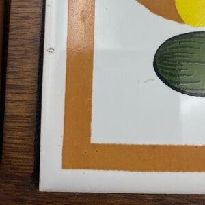 See photos for condition - there is one visible scratch on the bottom edge, as well as some marks near where the knife is placed. There are also some marks/pitting near the left edge of the tile.