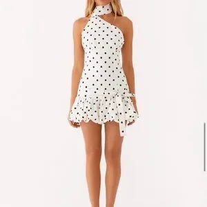 NEVER WORN BEFORE Chic and stylish, this polka dot halter dress is perfect for any occasion. The black and white design offers a classic look.