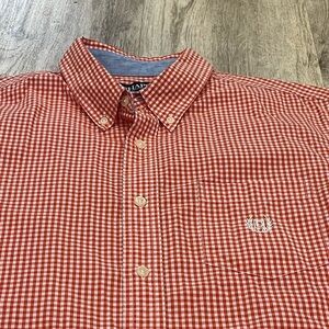 Chaps Men's Orange and white Checkered Shirt Large slim
