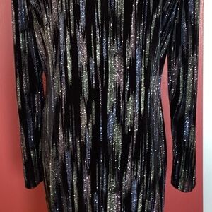 This stunning black and silver dress is perfect for any special occasion. Its elegant design and shimmering details make it a standout piece in any wardrobe.