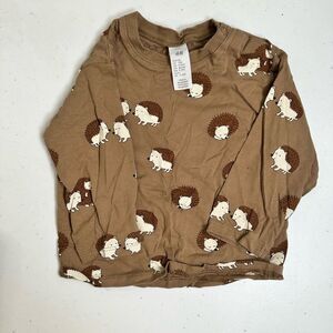 EUC H&M Baby Boy 3 Long Sleeve Tees Brown., Cream & Green Casual - Size 12M