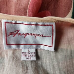 Anthropologie Anupamaa Dress Size L Silk Beige Bohemian Floral Costa Mira Maxi