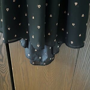 Princess Vera Wang backless black dress with coral colored tiny hearts. The dress has layers and dips longer in the back. Unique piece at the top. Size Small in Juniors.