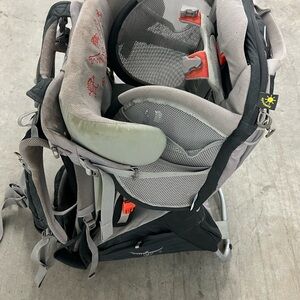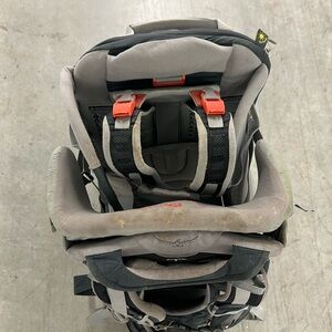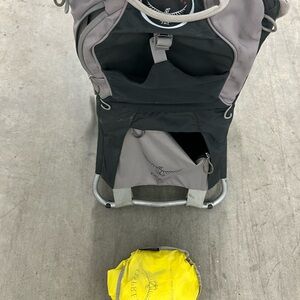 Explore the outdoors with the Osprey men's backpack. Featuring a sleek gray and black design, this bag is perfect for all your adventures. Some small stains as pictured