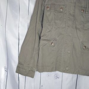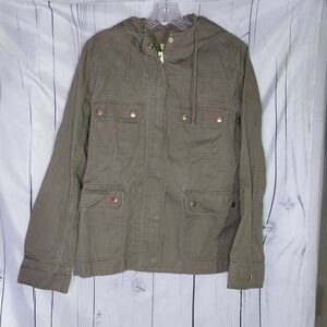 J.Crew Factory hooded resin coated field jacket olive green 100% cotton