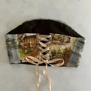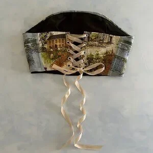 -Details: one of a kind made from upcycled textiles, ribbon loop, structured bust, lace is adjustable & removablein excellent pre-loved condition