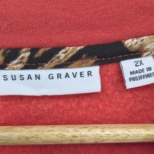 Susan Graver Orange V Neck Ruched Sleeve Sweatshirt Tunic Top Sz 2X Cozy Lounge