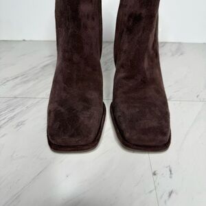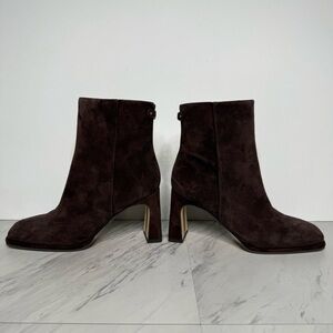 Sam Edelman Irie Brown Suede Square Toe Heeled Booties 6 1/2 M