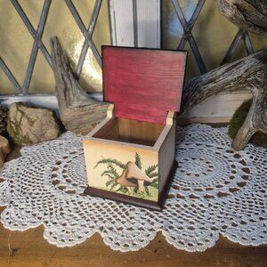 Handmade burgundy and cream wooden hanging matchbox adorned with handpainted whimsical mushrooms and green fern. Beautifuly store keys or small treasures in this sort of trinket box wall decor! Approx. 7.5" x 4.5" x 4.5". In good condition (see examples of sings of wear on last two photos). ✨️ Bundle 3 or more items to get 15% off at checkout or MAKE ME AN OFFER! 💲 New to Poshmark? Get $15 off your first purchase when you sign up with referral code MELISSAELIANDRE ! 🧚‍♀️ The Fairy Lost & Found Department is a smoke-free and animal friendly environement. 🍃 Shipping material is recycled to preserve our Mother Nature. 🕵‍♂️ Please take a good look at all the photos, which are part of the item's description, and keep in mind that vintage and used items do have imperfections. As a half-Fairy, I am just as imperfect. If I missed a major flaw on your purchase, please let me know and I will work out the best possible arrangement for you. 💖 Only a willing Human can return a Fairy's lost treasure. With your help, our gizmos can regain their rightful owners, Human or Fairy. Love at first sight? Whatever captured your heart is yours by magical right! - Mélisange-la-Fée 🍀🍄