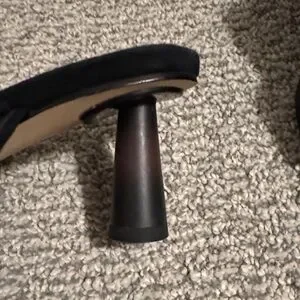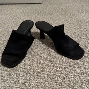 Elegant black suede mules with a comfortable block heel. Perfect for any occasion.