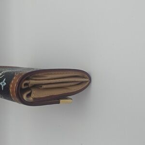 This Louis Vuitton wallet features a vibrant multicolor monogram design on a black background, accented with tan leather trim. Perfect for adding a touch of luxury to your everyday essentials. ✨️