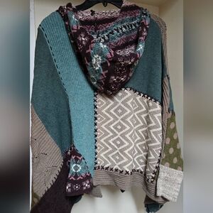 Anthropologie Sleeping On Snow Multicolor Patchwork Boho Sweater Cardigan
