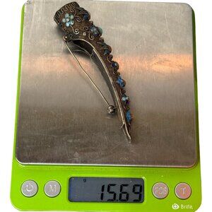 Antique Silver Filigree Gems & Guilloche Enamel Chinese Fingernail Guard Brooch