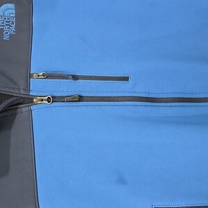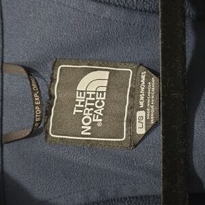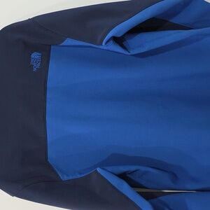 The North Face jacket in royal blue and navy. Ideal for outdoor wear. Has 2 little marks.. Sold As is. as shown in pictures.