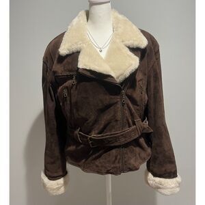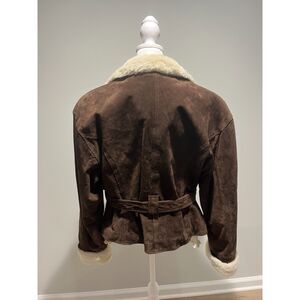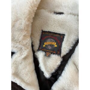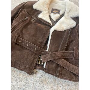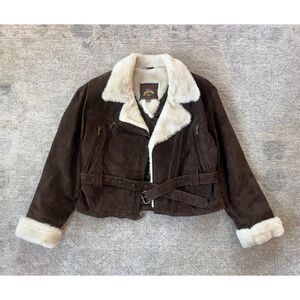 90s Adventure Bound Leather Shearling Sherpa Deep Pile Fur Bomber Jacket Women M