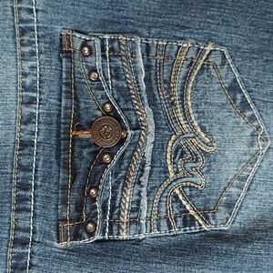 โข Wallflower Stretchy Distressed Cropped Capri Jeans, Medium Blue Wash. Size 20