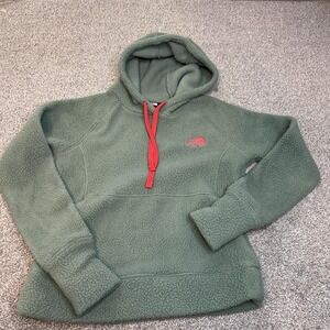 The North Face Sherpa Fleece Hoodie Womens Small Green Pullover Kangaroo Logo