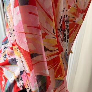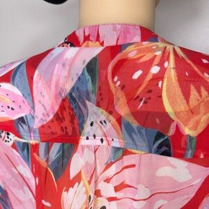 Characteristics: Chico’s blouse, tropical floral top, button down blouse, resort wear, vacation blouse, summer floral shirt, colorful blouse, business casual top