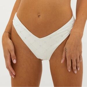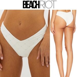 BEACH RIOT Jessica Studded Top Vanessa High Cut Bikini Bottom in Ivory Pearl NWT