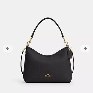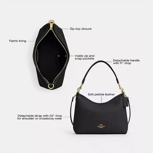 Sleek black leather bag with gold-tone hardware. Ideal for everyday use. Timeless Coach design. It does not have the long strap only the detachable handle for shoulder wear.. please understand before purchasing.. used maybe 4 times excellent condition