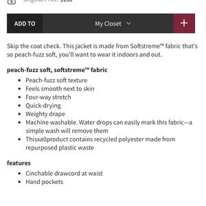 Lululemon Softstreme Cinch-Waist Jacket Smoked Spruce size 8
