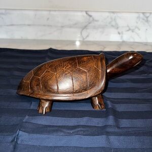 This is a beautiful wood turtle accent piece! Perfect to put on a shelf, table, desk, or counter top! A great gift for anyone who likes wooden decor pieces or collects turtles!