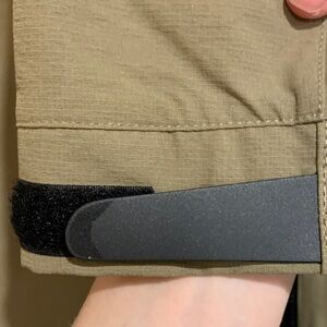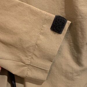 Sleek olive windbreaker with hood. Features front zip and adjustable cuffs. Ideal for casual wear.