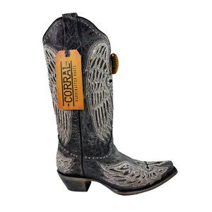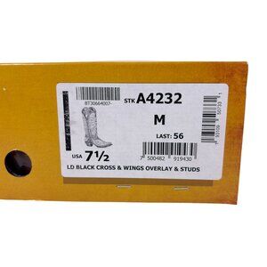 Corral Black Cross & Wings Overlay & Studs Western Boots Womens 7.5 M A4232 NEW